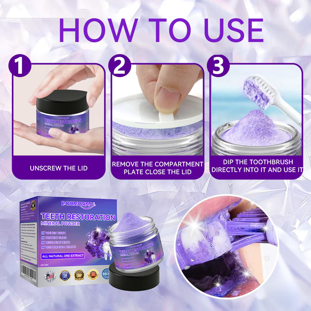 ๐๐จ๐ซ๐ฆ๐จ๐ซ๐ง๐ยฎ ๐๐๐๐ญ๐ก ๐๐๐ฌ๐ญ๐จ๐ซ๐๐ญ๐ข๐จ๐ง ๐๐ข๐ง๐๐ซ๐๐ฅ ๐๐จ๐ฐ๐๐๐ซ contains six powerful, proven key ingredients that have been used by millions of people around the world to effectively treat tooth loss and prevent cavities.